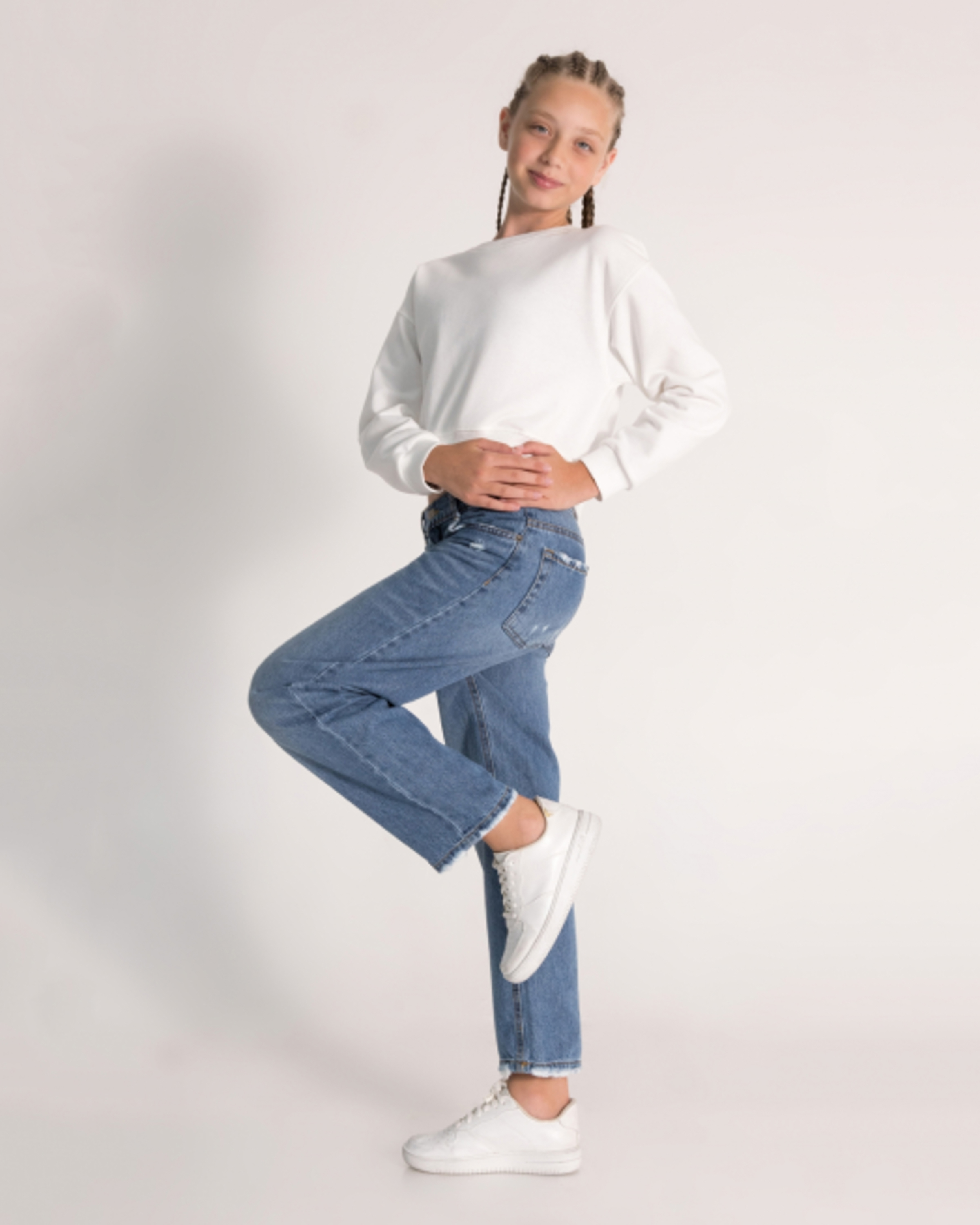 Детские подростковые джинсы торговой марки DMB — идеальный выбор для юных модниц. Эти стильные джинсы сшиты в Турции из качественного 100% хлопка, что обеспечивает комфорт и долговечность. Прямой крой, плавно переходящий к зауженному низу, создает современный силуэт, который подходит как для активных игр, так и для повседневных встреч с друзьями. Джинсы DMB отлично сочетаются с различными верхами — от футболок до свитеров, позволяя создавать множество стильных образов. Благодаря высококачественному материалу, они приятно облегают тело, не сковывая движений, что особенно важно для подростков в период активного роста и развития. Выбирайте джинсы DMB, чтобы подчеркнуть индивидуальность вашего ребенка и подарить ему уверенность в каждом шаге!