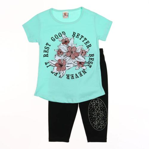 Практичный костюм для девочки состоящий из футболки и бридж. Горловина футболки обработана эластичной бейкой. Бриджи в поясе на резинке. Комплект выполнен в контрастной расцветке, темные бриджи красиво смотрятся с яркой, однотонной футболкой с крупным принтом спереди. Костюм изготовлен из хлопкового полотна кулирка - нежного и мягкого, гипоаллергенного и легкого в уходе. Модель прекрасно подойдет для повседневной носки на улице или дома, для детского сада, а так же для активного отдыха и занятий спортом.