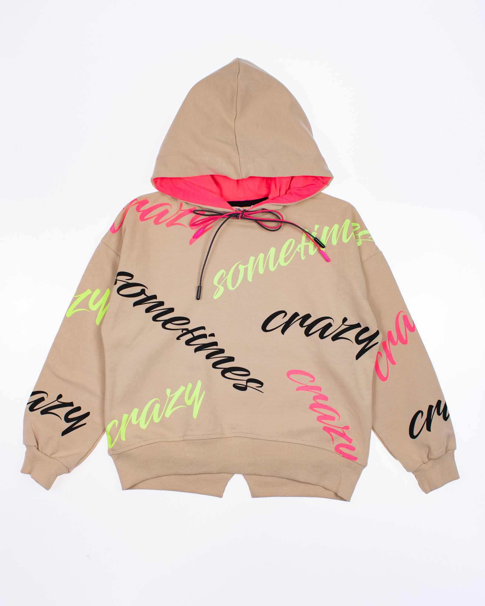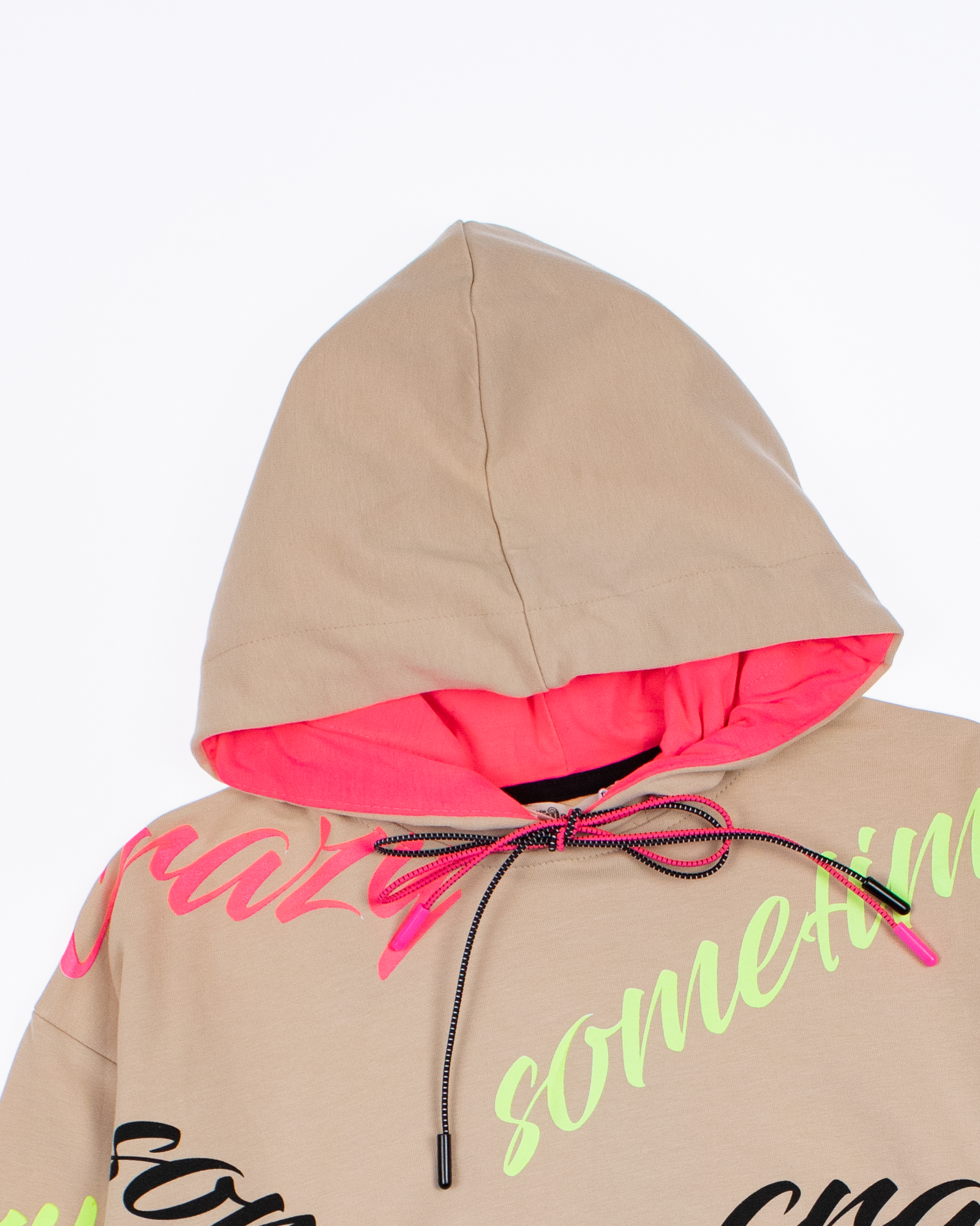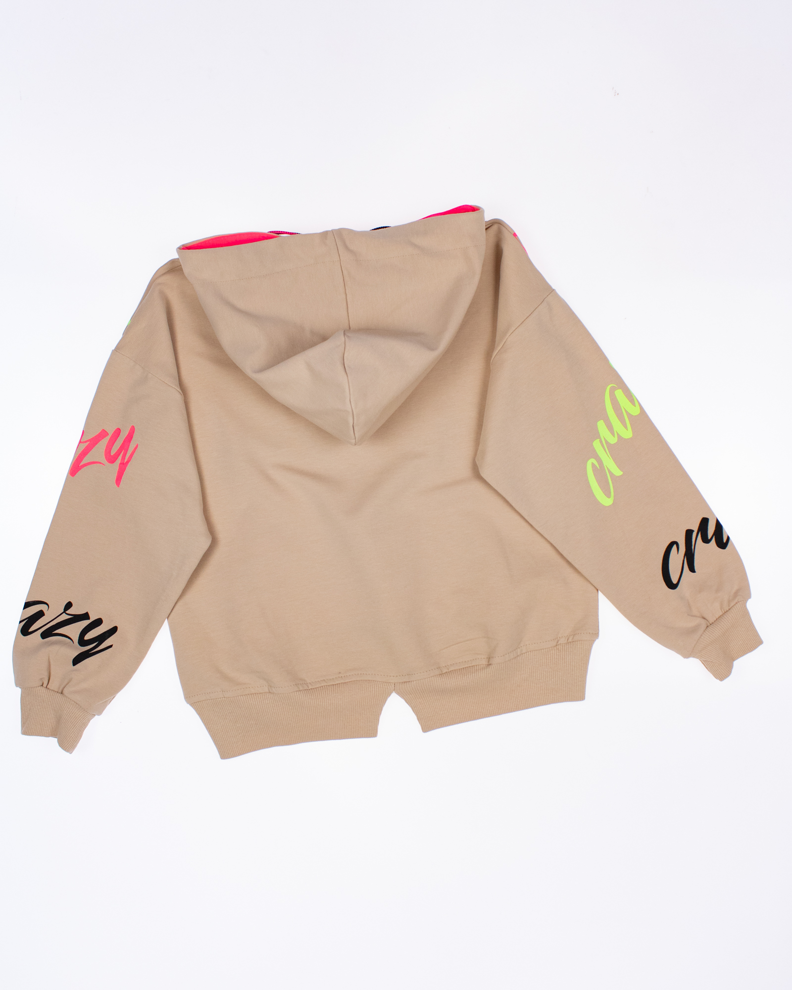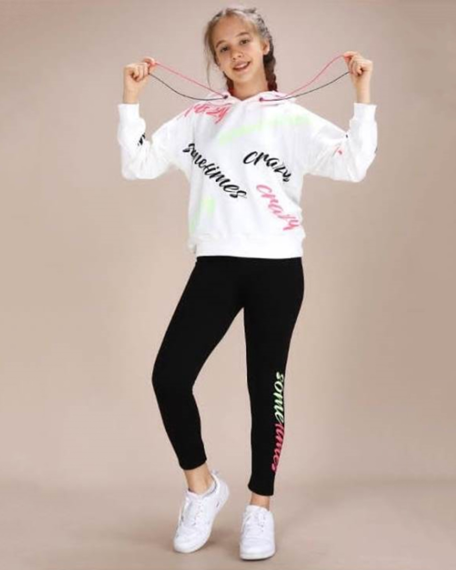 Спортивный костюм Smile оптом состоит из худи и лосин. Худи с двойным капюшоном без карманов, на манжетах. Выполнен костюм из трикотажа футер (петля).