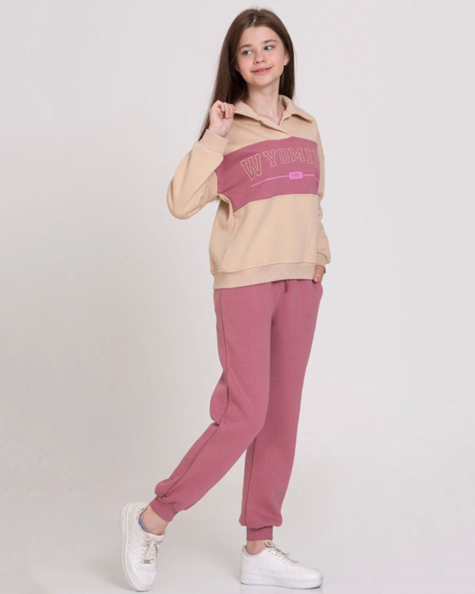 Трикотажный костюм SMILE для девочки — идеальный выбор для юных модниц, стремящихся к комфорту и стилю. Выполненный из высококачественного трикотажа футер (начес), произведённого в Турции, этот костюм обеспечивает тепло и уют в холодное время года. Свитшот с воротником-стойкой имеет удобную короткую молнию, что добавляет нотку современности и практичности. Он легко надевается и снимается, что особенно важно для активных девочек. Прямые брюки на манжетах не только стильно смотрятся, но и обеспечивают свободу движений. Смесовый состав ткани гарантирует долговечность и лёгкость ухода за изделием, что делает этот костюм идеальным вариантом для повседневной носки. Заказывая костюм SMILE оптом, вы делаете выбор в пользу качества и практичности, позволяя детям выглядеть модно и чувствовать себя комфортно каждый день.