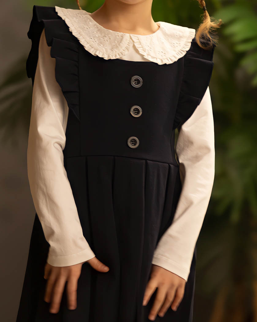 Школьный сарафан DMB для девочки оптом– это самый удобный и практичный вариант одежды. Сарафан выполнен из плотного трикотажа. Благодаря своему удобству и универсальности сарафан приглянулся многим школьницам, и данный элемент одежды плотно вошел в новые стандарты. Сейчас благодаря разнообразию модных решений это изделие стало хитом.
