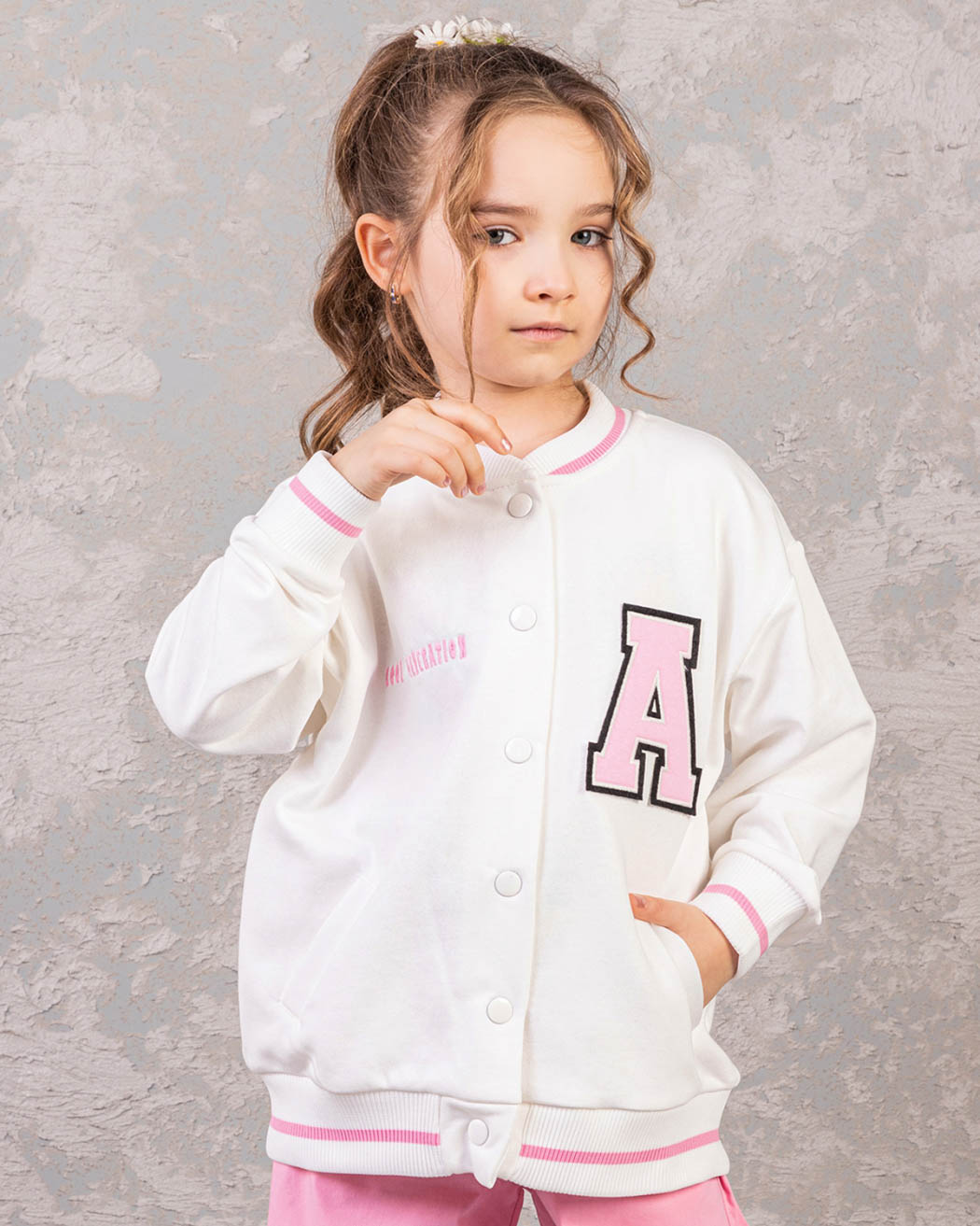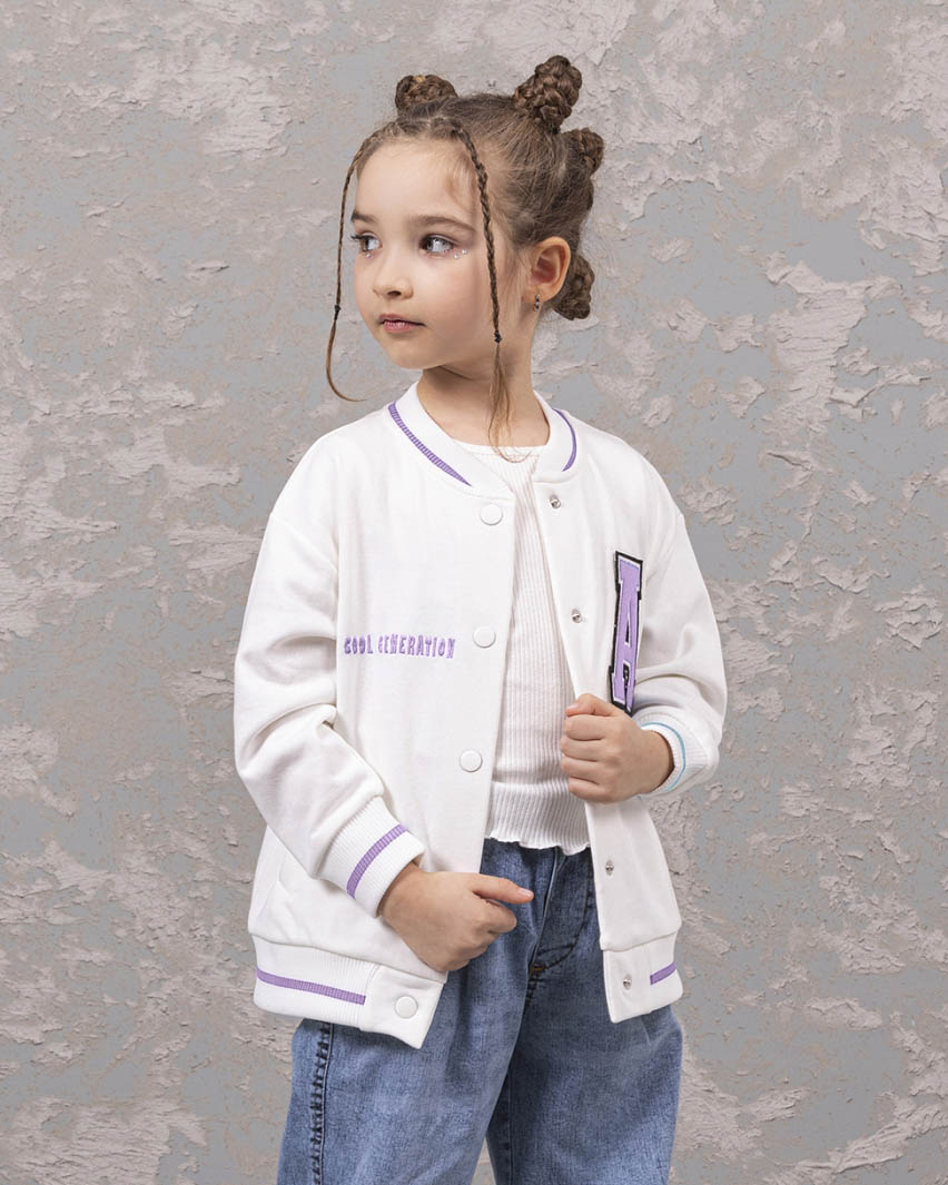 Детский бомбер из качественного трикотажа футер петля для девочки предлагается оптом от производителя из Турции. Этот стильный бомбер выполнен в молочном цвете, что придает ему нежный и аккуратный вид. Манжеты и горловина оформлены резинкой, что обеспечивает комфортную посадку и защиту от скольжения. Особое внимание заслуживает принт на передней и задней сторонах бомбера. Это классный модный принт, выполнен в стиле аниме, который понравится многим девочкам. Он придает этой модели особый шарм и экспрессивность, делая ее необычной и запоминающейся. Дополнительным преимуществом этого бомбера являются два кармана по бокам. Качественный трикотаж футер петля обеспечит долговечность изделию, а производство в Турции гарантирует высокое качество и стандарты.