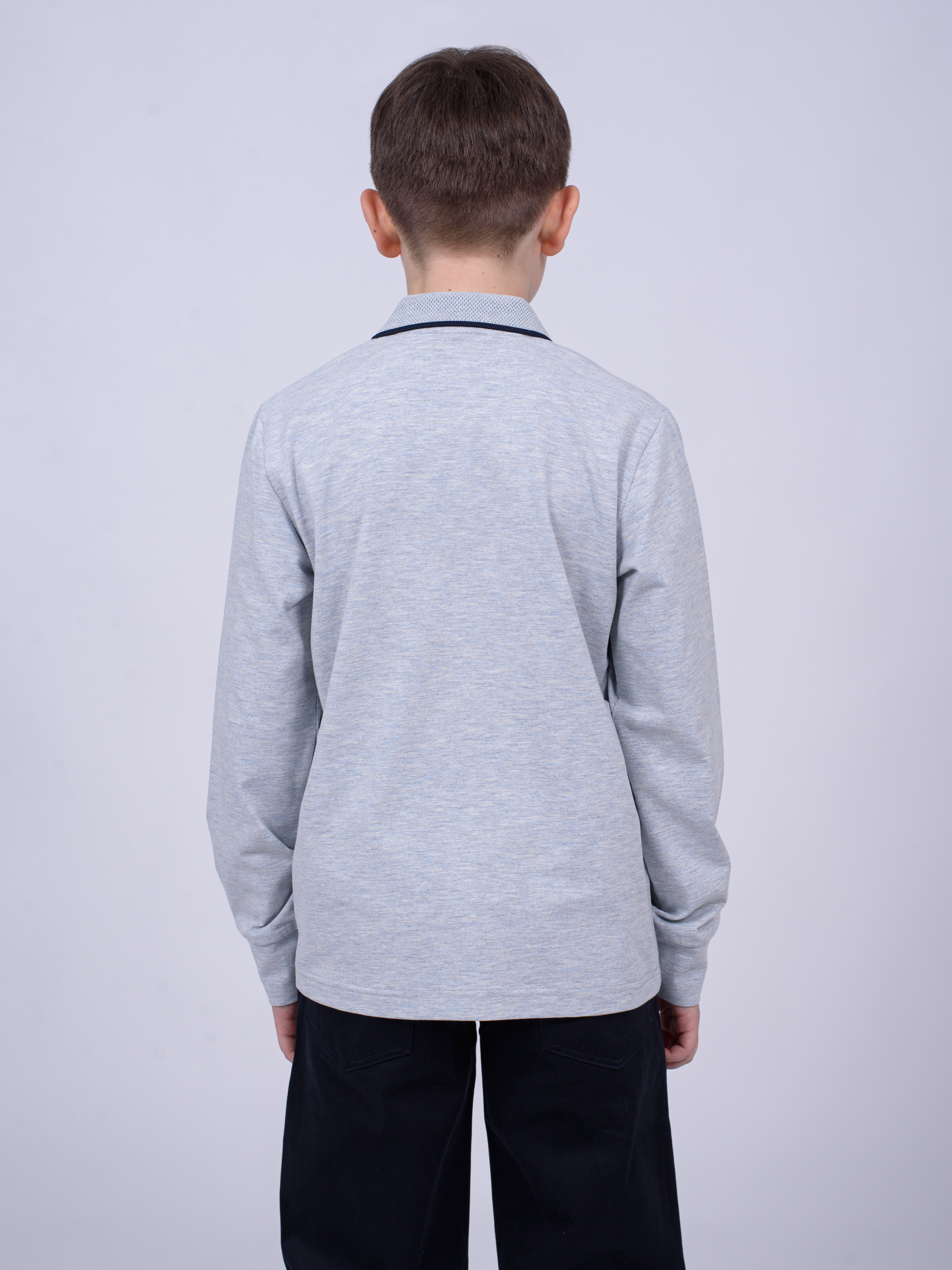 Детское однотонное поло Cegisa для мальчика оптом. Поло прямого силуэта имеет застежку- кнопки, вязаный отложной воротничок, рукава оформлены манжетами.