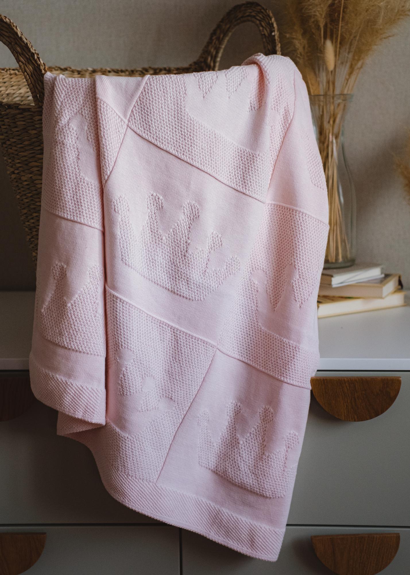 Эта модель выполнена из хлопковой нити, узором в виде широкой клетки с короной посередине.