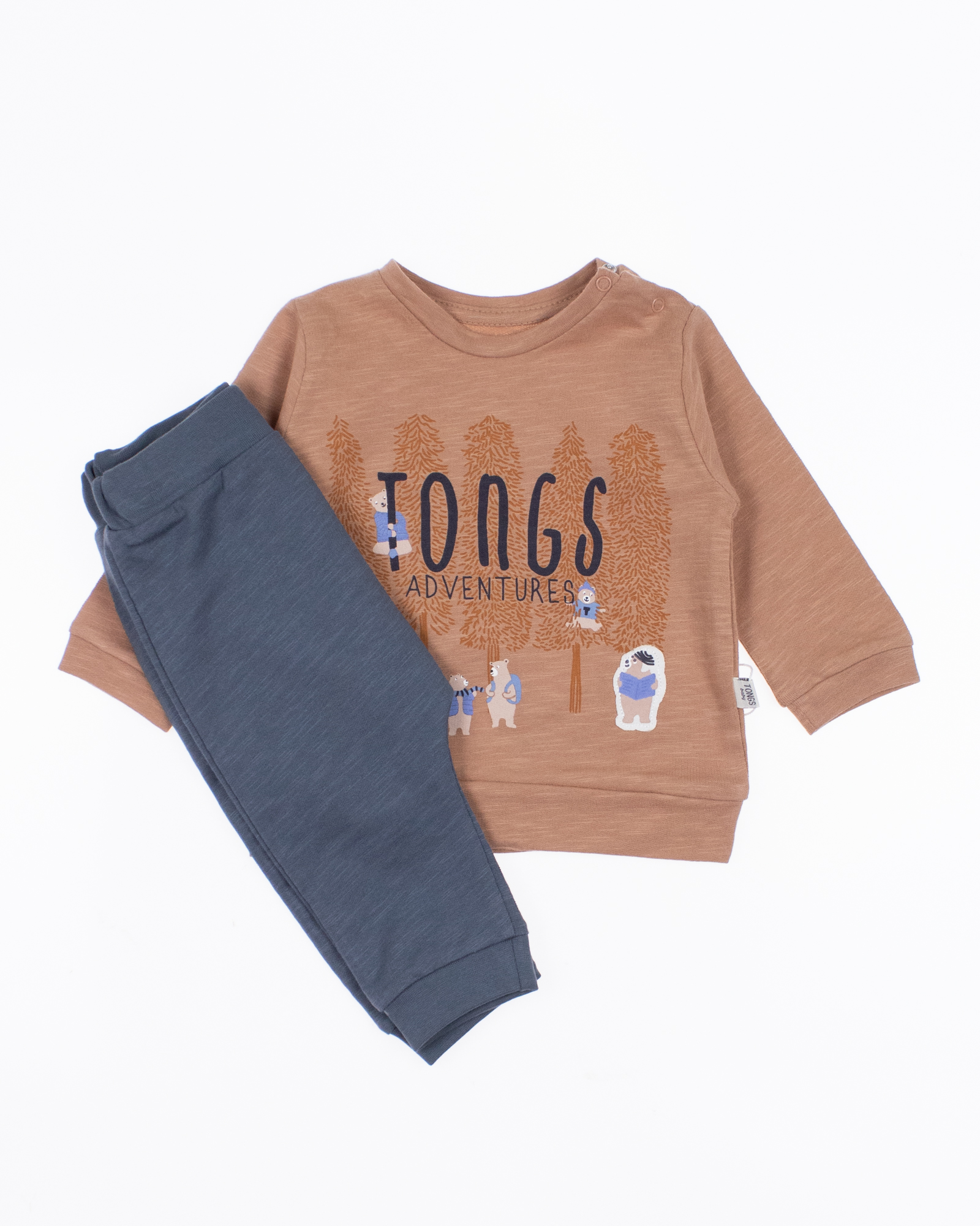 Детский комплект TONGS BABY оптом состоит из  свитшота и  джогерров. На свитшоте и штанишках присутствуют манжеты, которые можно подвернуть . Ткань мягкая, дышащая, 100% хлопок. Можно носить дома, на прогулку и в гости.