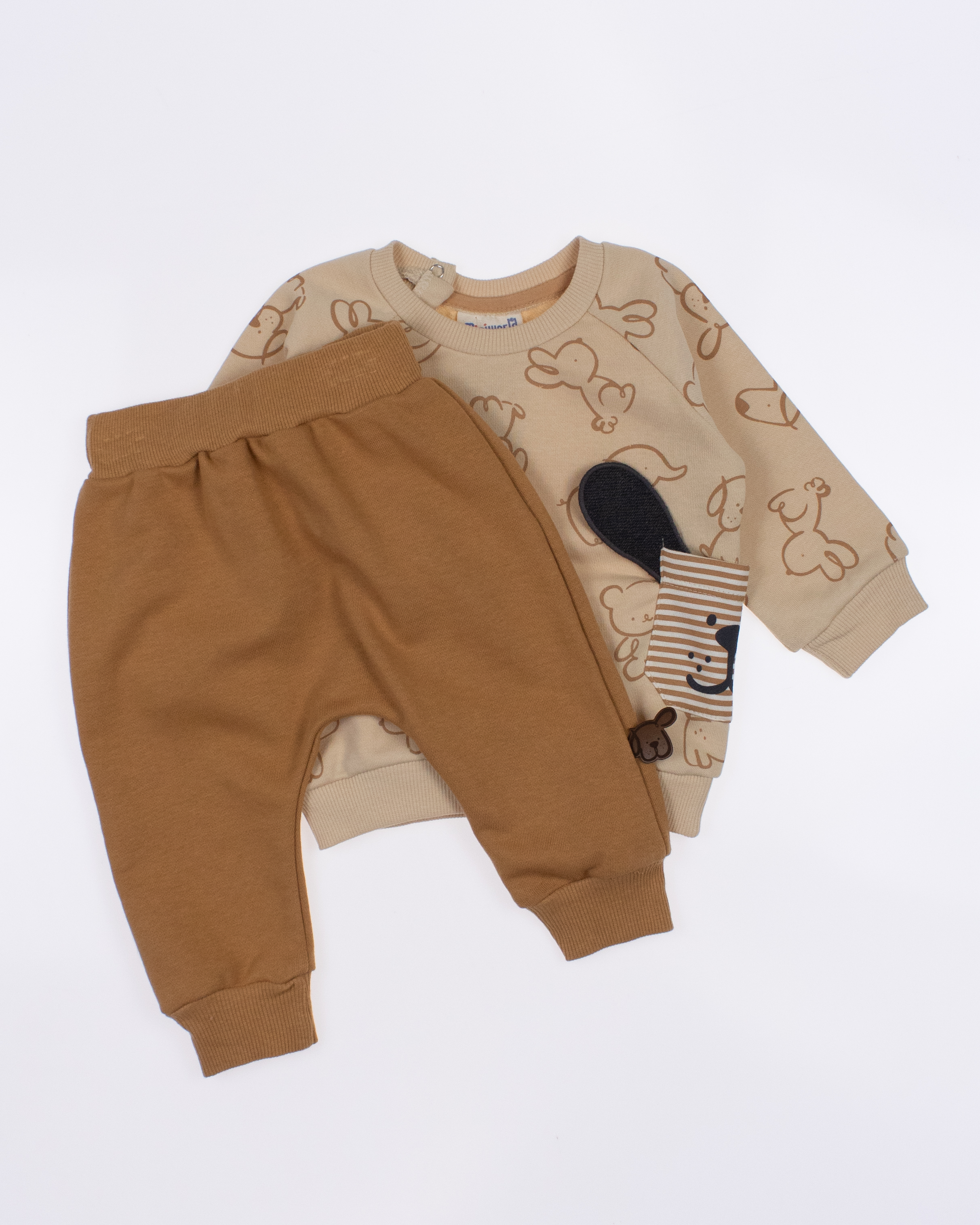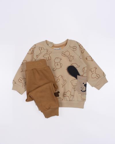 Мы предлагаем оптовые продажи детской одежды производства Турция. Хлопковый костюм  MINIWORLD выполнен из футера (петля), что гарантирует комфорт и безопасность для самых маленьких детей. Свитшот имеет удобную застежку-кнопки на плече, что облегчит процесс надевания и снятия одежды. Штанишки с мягкими манжетами на эластичном поясе идеально подходят для ношения с подгузником, обеспечивая свободу движений и комфорт. Детский милый принт на костюме поможет развить фантазию и воображение ребенка, делая его образ ярким и запоминающимся. Костюм MINIWORLD - отличный выбор для маленьких модников и их заботливых родителей. Не упустите возможность приобрести этот уникальный товар оптом по выгодной цене!