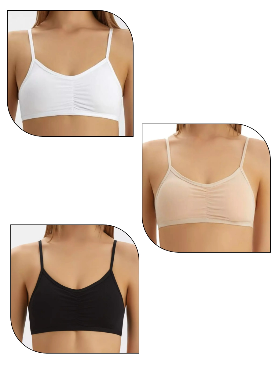 В наборе по 1 штуке белый, бежевый и черный цвета. Майка-топ детская оптом, производства Турция, является идеальным и комфортным вариантом нижнего белья для девочек. Топы Baykar изготовлены из дышащего хлопка на 95%, с добавлением эластана на 5%. Модель бюстгальтера имеет мягкую чашку без косточек и съемные вкладыши из поролона. Кроме того, наличие съемных вкладышей из поролона позволяет регулировать уровень поддержки и формы груди. Это особенно полезно для подростков, которые находятся в периоде активного физического развития. Мягкий материал и удобный фасон делают эту майку-топ идеальным выбором для повседневного нижнего белья. Она также отлично подходит под одежду, особенно под блузки. Более того, она станет незаменимым аксессуаром для занятий спортом, бега и фитнеса. Нижнее белье от Baykar обеспечивает комфорт на протяжении всего дня. Мягкая ткань и отсутствие косточек позволяют коже дышать и не создают ощущения дискомфорта. Это особенно важно для детей, так как они проводят активное время, и им нужна надежная и удобная одежда.